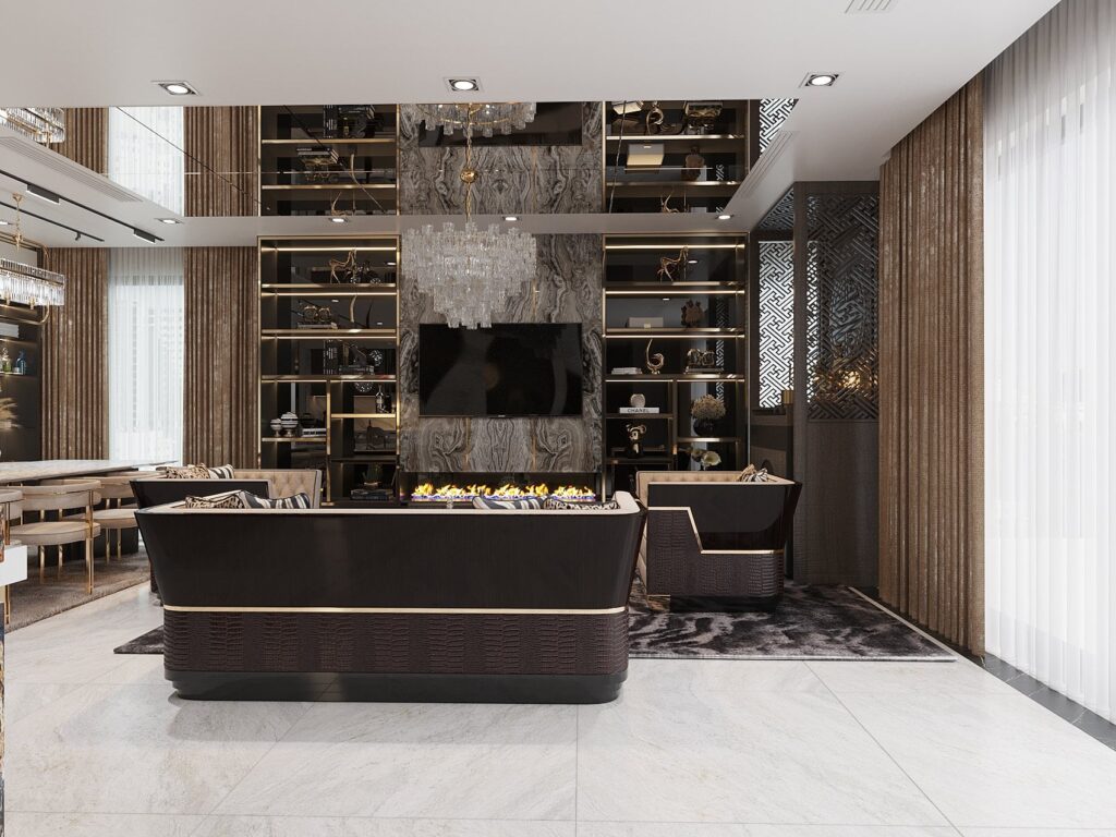 Thiết kế nội thất chung cư phong cách luxury với tông màu tối sang trọng